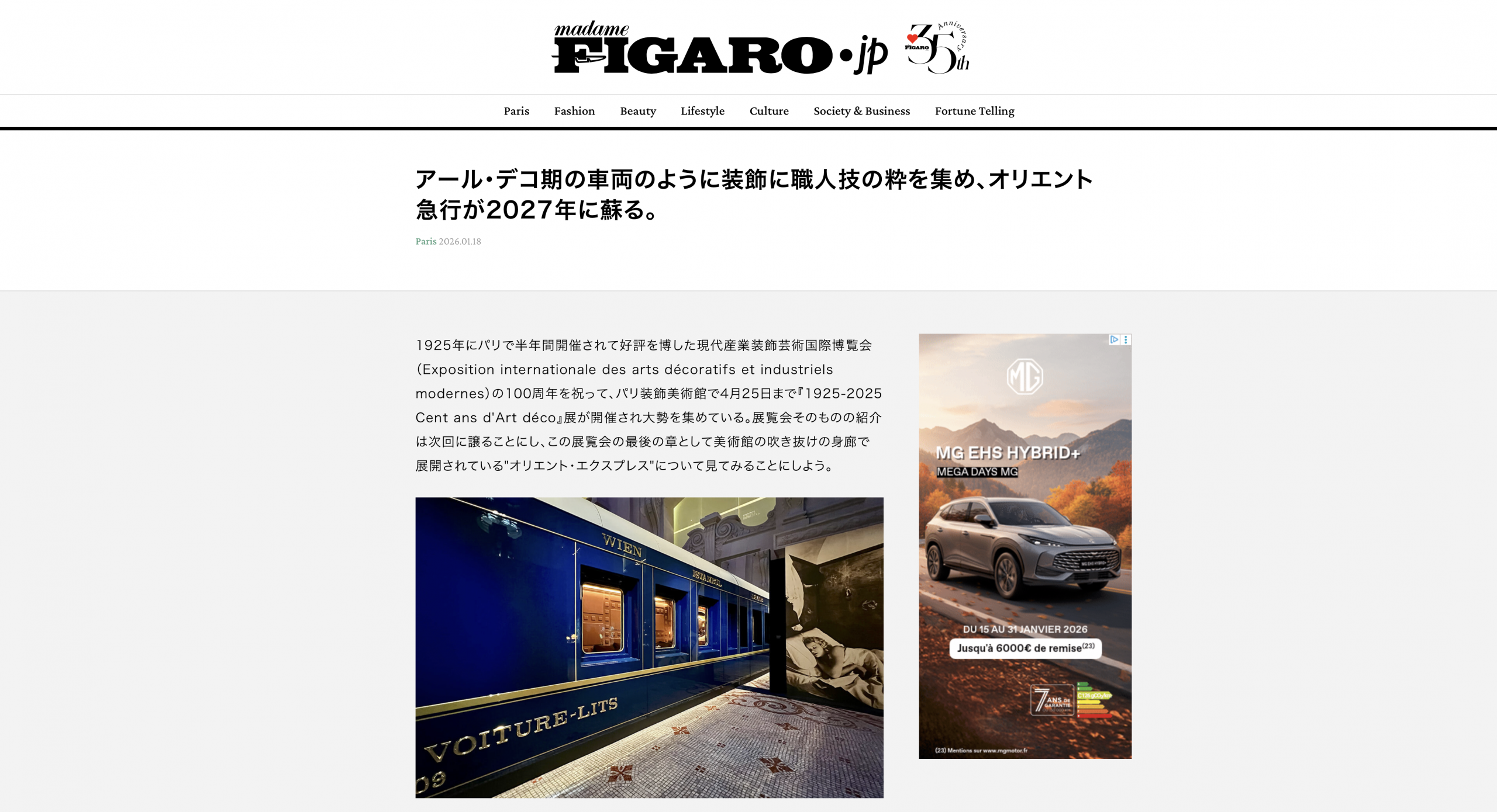 1925年にパリで半年間開催されて好評を博した現代産業装飾芸術国際博覧会(Exposition internationale des arts décoratifs et industriels modernes) の100周年を祝って、パリ装飾美術館で4月25日まで『1925-2025 Cent ans d’Art déco』展が開催され大勢を集めている。展覧会そのものの紹介は次回に譲ることにし、この展覧会の最後の章として美術館の吹き抜けの身廊で展開されている »オリエント・エクスプレス »について見てみることにしよう。