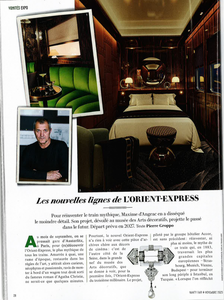 Pour réinventer le train mythique, Maxime d’Angeac en a disséqué le moindre détail. Son projet, dévoilé au musée des Arts décoratifs, projette le passé dans le futur. Départ prévu en 2027.